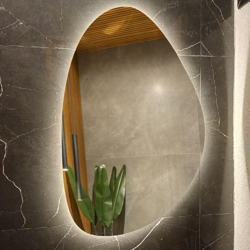 Espelho Orgânico Led Sem Fio Luz Quente/Fria, Pilha Bateria, Espelho Irregular Decorativo Moderno