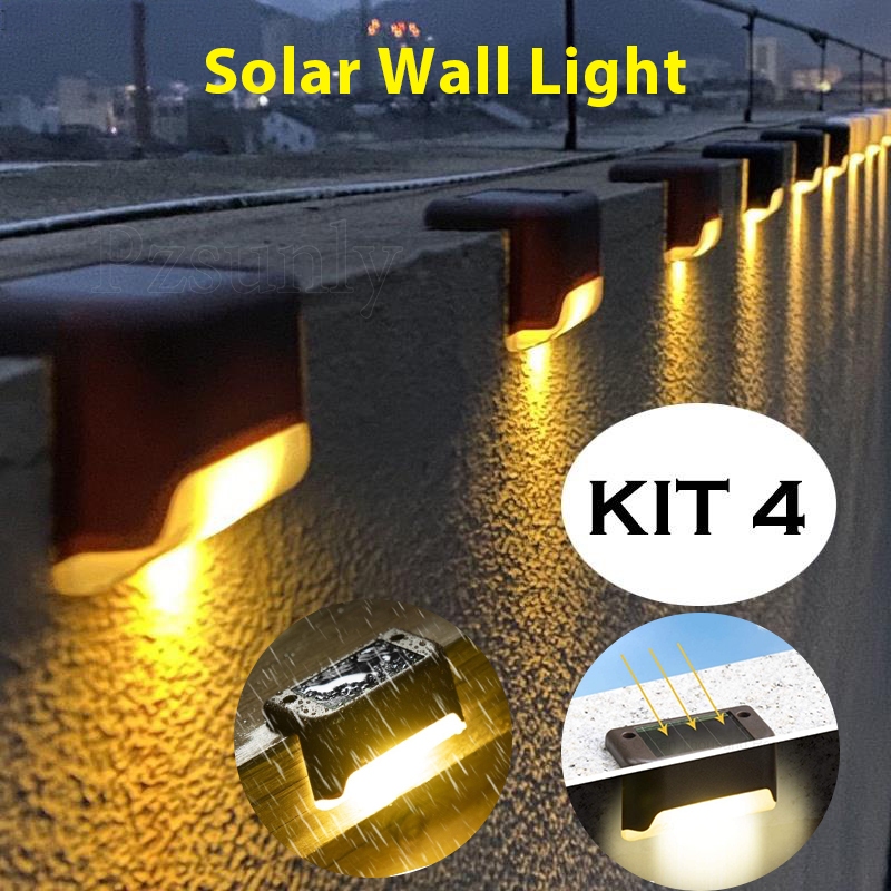 4 Lâmpadas LED Solares PCS Para Jardim Decoração De Lâmpada De Parede À Prova D'água D'água Inteligente Sensor De Controle De Luz Luzes De Escada