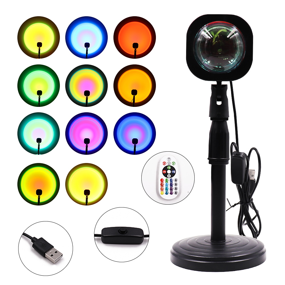 16 Em 1 Lâmpada De Luz Do Pôr Sol Com Luzes De Projetor Remoto Para Sala À Noite Lâmpadas LED Arco-Íris Estéticas