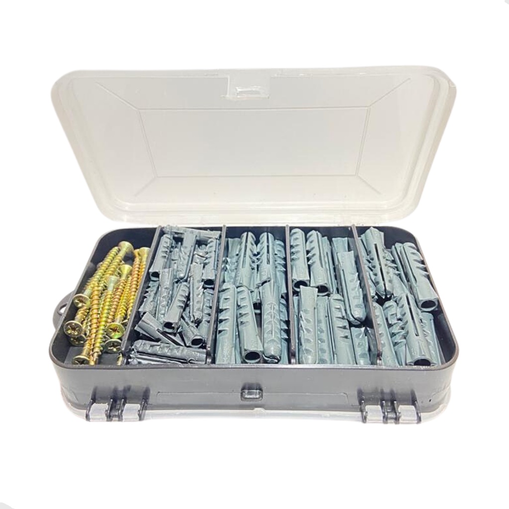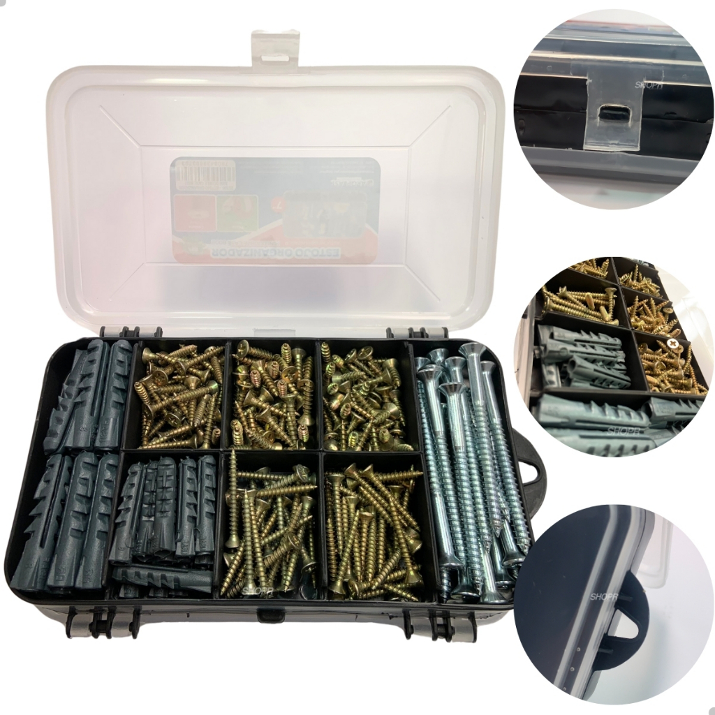 Estojo Caixa Kit 500 peças Parafuso Parafusos Chipboard Philips + Buchas Maleta Organizadora