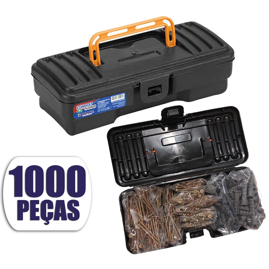 Kit Parafusos Buchas 1000 Pçs C/ Maleta Chipboard P/ Madeira Marceneiro Estande Montador Promoção