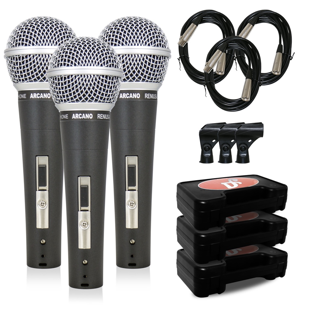 Kit 3 microfones dinâmicos Arcano Renius-8 com fio XLR-P10