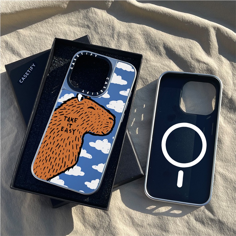 CASETiFY X Take It Easy Sucção Magnética Matte Black & Sliver Mirror Casing Apple IPhone 15 14 13 12 Pro Max Plus Tampa Da Caixa Traseira Dura Com Logotipo De Escultura Em