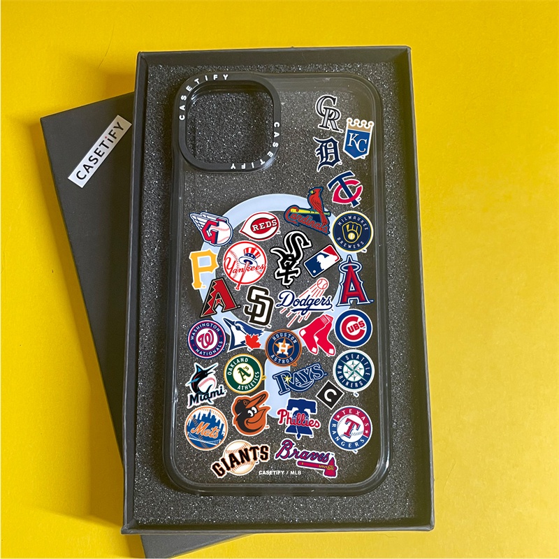 CASETiFY X MLB Mania Adesivo Sucção Magnética Borda Preta Transparente Sideband Fonte Invólucro Apple IPhone 11 12 13 14