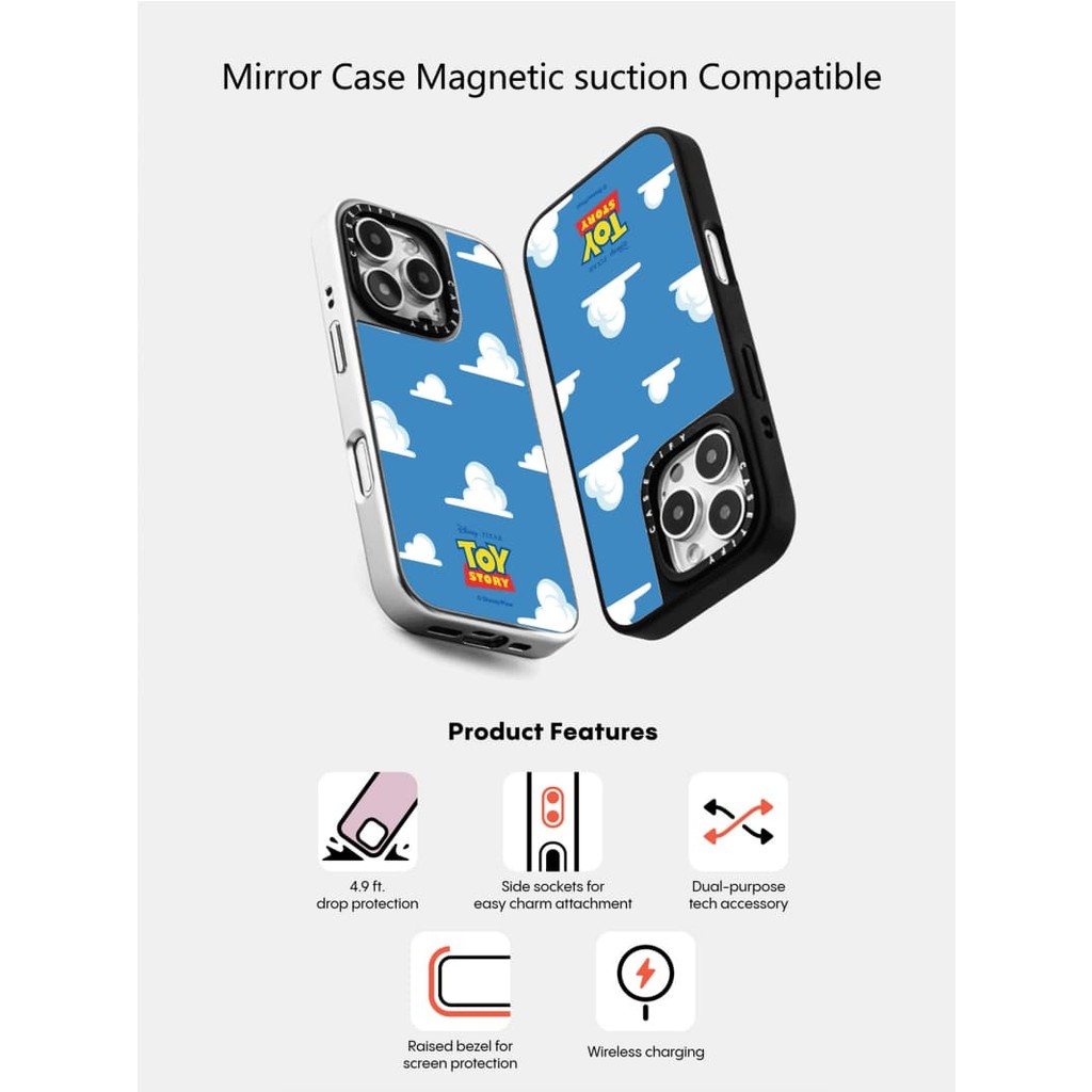 CASETiFY X Disney E Pixar's Toy Story Sucção Magnética Capa Preta Espelhada Prateada Para IPhone 16 15 14 13 12 Pro Max Plus Traseira Rígida Com Logotipo De Escultura Em Caixa