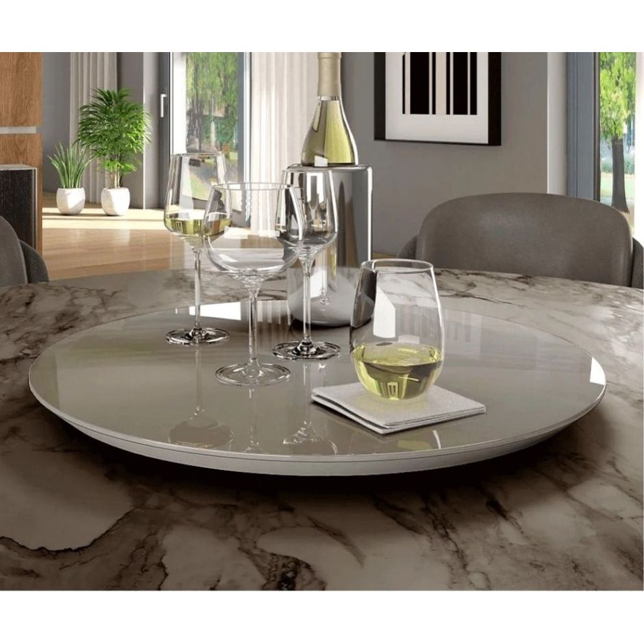 Prato giratório para mesa de MDF e vidro fixo laqueado na cor Off White *off