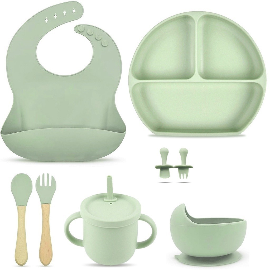 MODUS 8pcs Conjunto De Talheres Infantis Para Bebês Complementares De Treinamento De Alimentos Tigela De Sucção De Silicone Materno
