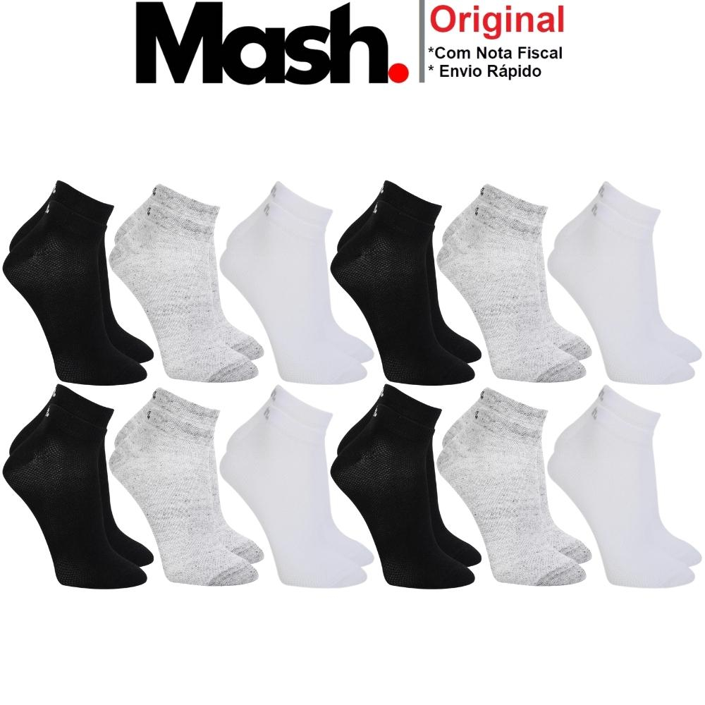 Kit 12 Pares De Meias Curta Mash Original Esportiva Algodao Soquete Cano Curto