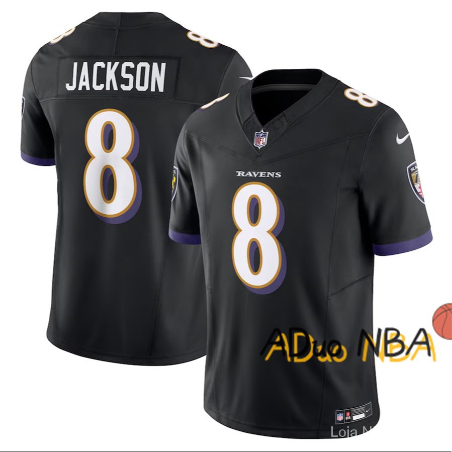 2023-24 Masculino Camiseta NFL Baltimore Ravens Lamar Jackson #8 Regata Preto Limitada Camisa De Futebol Americana Jersey
