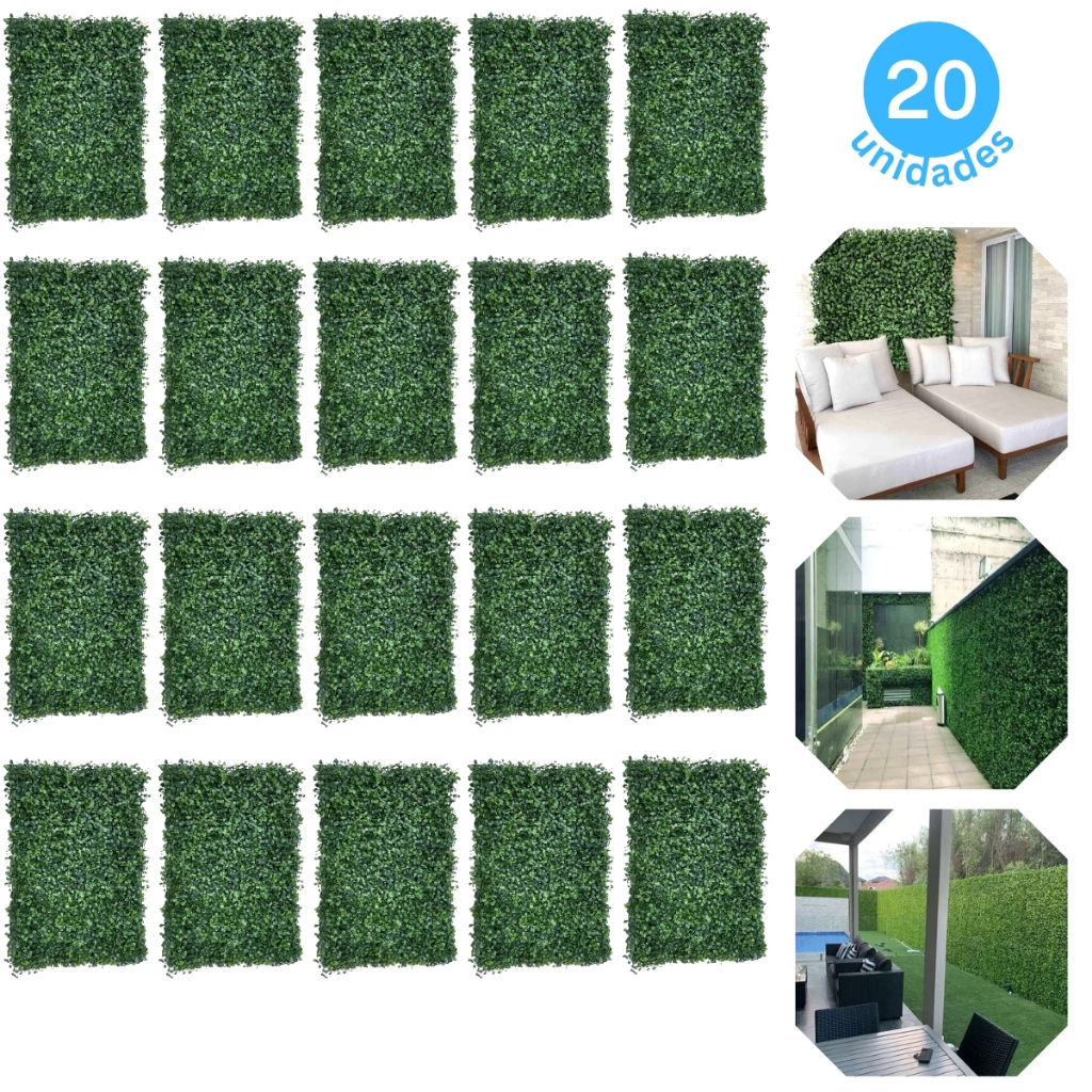 kit 20 unidades Placas 40x60 Buchinhos Grama Artificial Jardim Vertical Parede Verde decoração muro inglês + conector