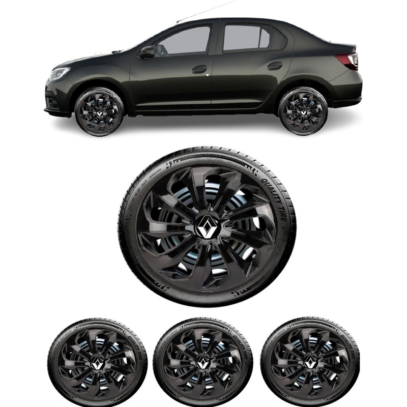 Jogo 4 Calotas Esportiva Velox Preto Brilhante Aro 14 Renault Logan 2008 2009 2010 2011 2012 2013 2014 2015 2016 2017