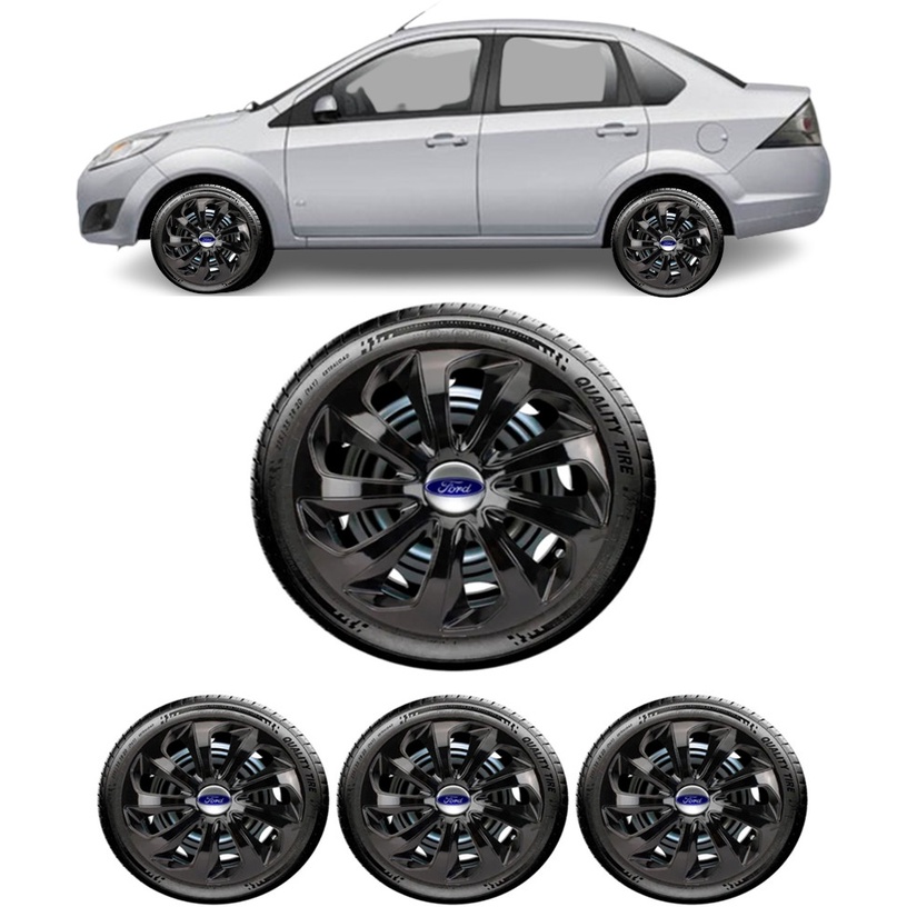 Jogo 4 Calotas Esportiva Prime Preto Fosco Aro 14 Ford Fiesta 2002 2003 2004 2005 2006 2007 2008 2009 2010 2011 2012 201