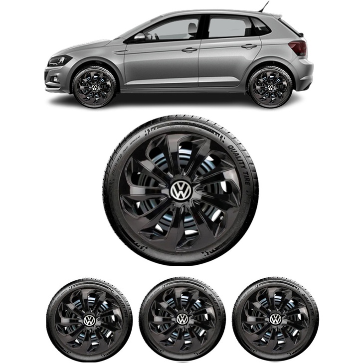 Jogo 4 Calotas Esportiva Velox Preto Brilhante Aro 14 VW Volkswagen Gol Up Fox Voyage Parati Saveiro Bora Polo SpaceFox