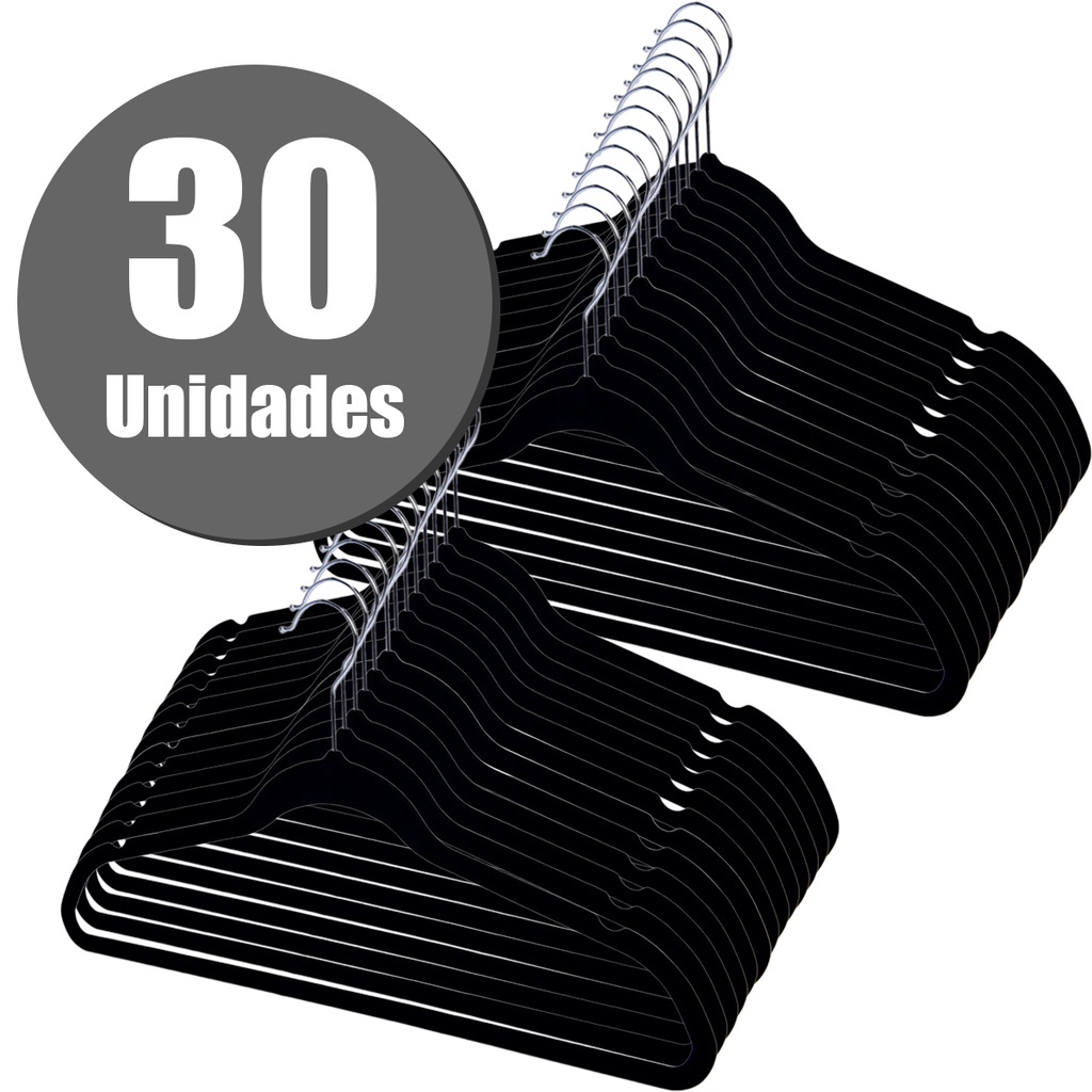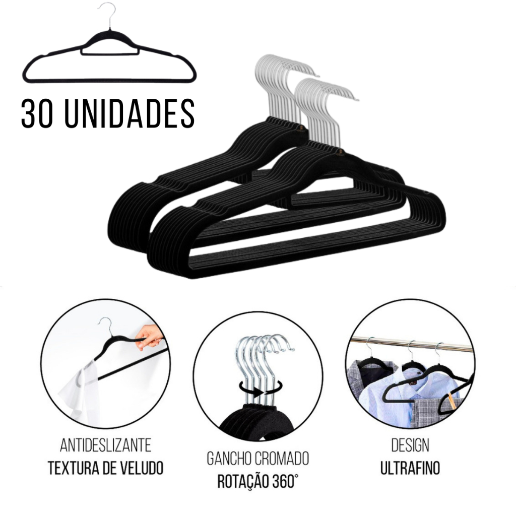 Kit Cabide Veludo Para Roupas Adulto 30 Unidades Fino Resistente Cabides