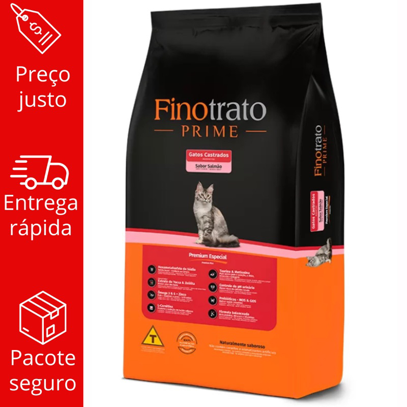 Ração Finotrato Prime para Gatos Castrados Sabor Salmão - 1kg a Granel