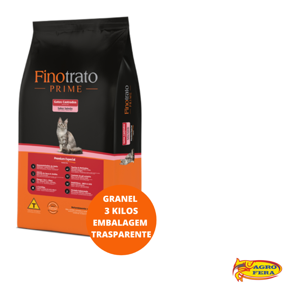 3 Kilos A Granel de Ração Finotrato Prime para Gatos Castrados sabor Salmão