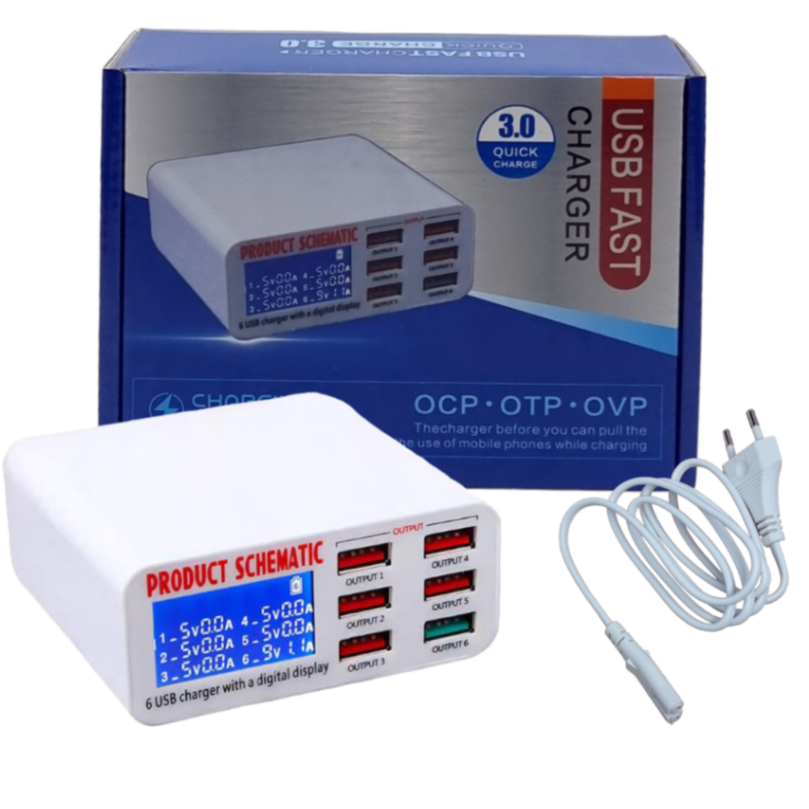 Carregador Celular Inteligente Usb Lcd 6 Portas Qc 3.0 Turbo Cor Branco
