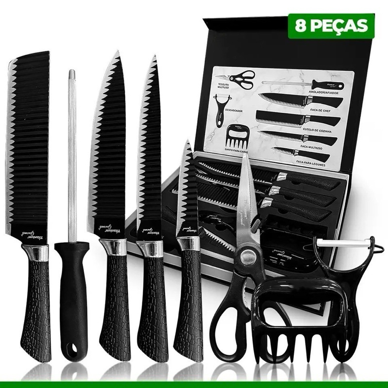 Jogo de Facas 8 Peças Profissional Aço Inoxidavel Para Churrasco e Cozinha faca Mármore