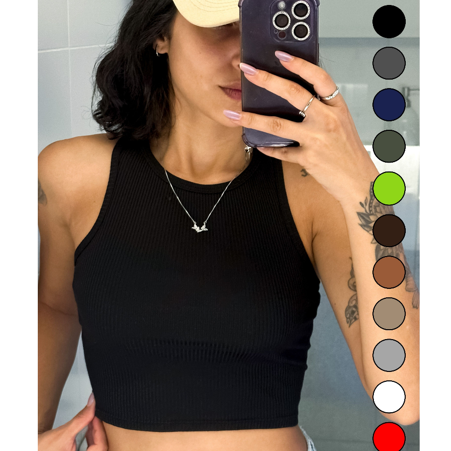 Top Cropped Regata Canelado Costas Nadador Blusa Feminina Básico