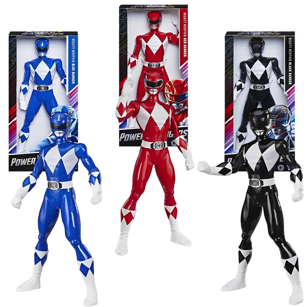Kit 3 Bonecos Power Rangers 24cm Articulados Vermelho Azul E Preto Clássicos Mighty Morphin Colecionável Super Heróis Figuras de Ação Infantil Para Crianças e Adultos Brinquedo Original Hasbro