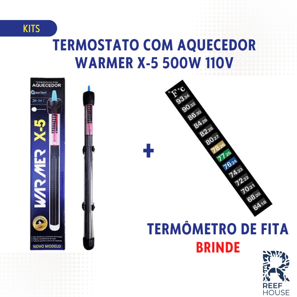 Termostato Warmer X-5 500W 110V com Aquecedor Ocean Tech p/ Aquários