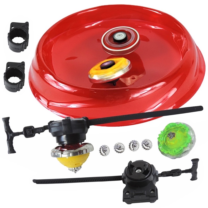 Brinquedo Beyblade Burst Gyro Combat com Arena Grande + Lançadores + Grip Empunhador 4 in 2 Jogo de Pião Presente Dia das Crianças Menino Crianças Turbo Metal