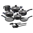 Jogo De Panelas Plus 10 Peças Caçarolas 16 a 24 cm Antiaderente Teflon com Tampa de Vidro Preto Grafite
