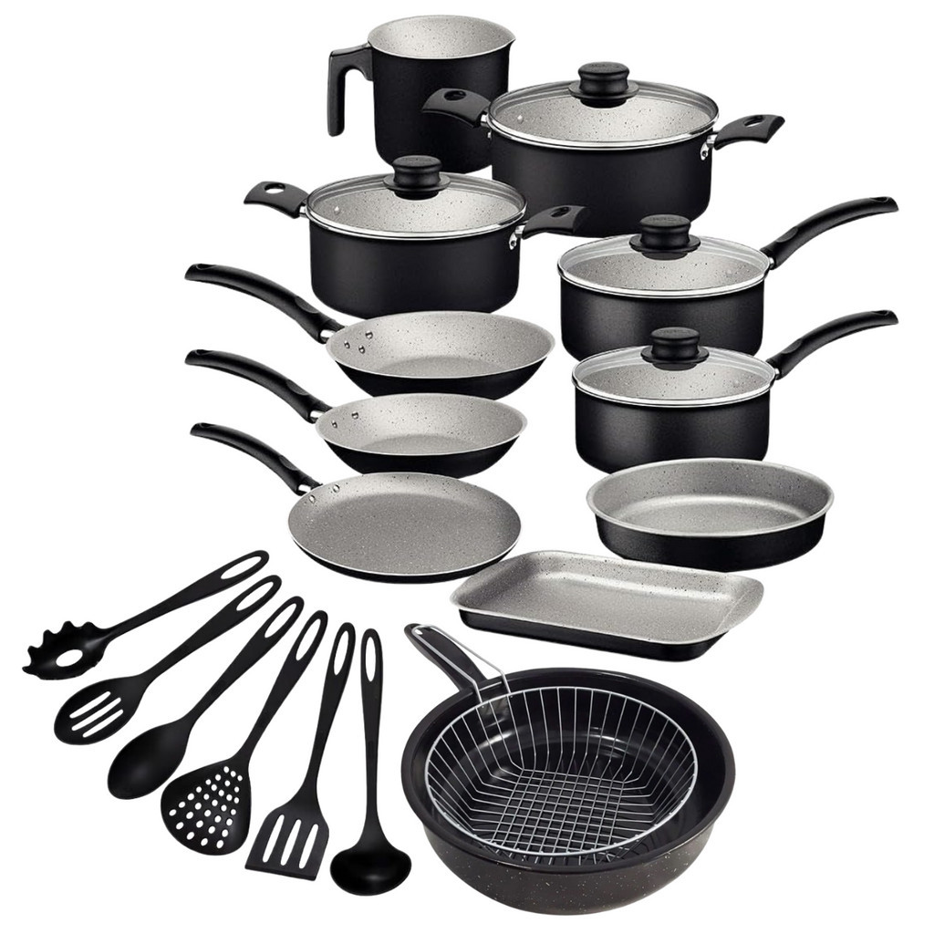 Jogo de Panelas Tramontina Antiaderente Turim 17 Peças Preto Frigideira Com Cesto Utensílios Cozinha Nylon