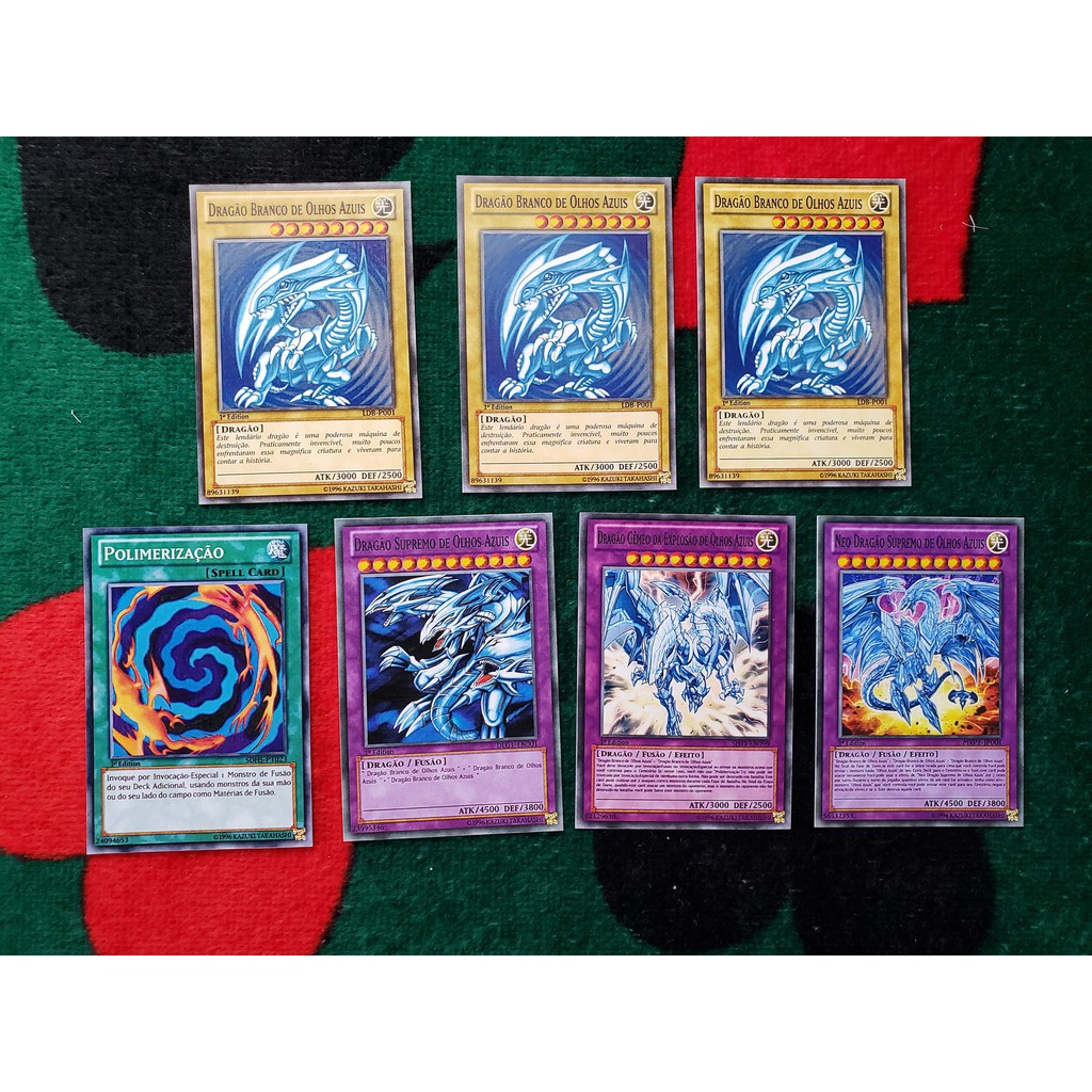 Cartas Yugioh - 3 Dragão Branco De Olhos Azuis + Fusões Top ORICA