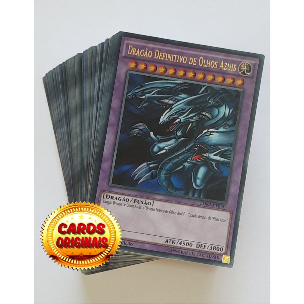 100 Cartas ORIGINAIS + Dragão branco de Olhos Azuis - idiomas misturados (em português e inglês) pack / lote Blue-Eyes