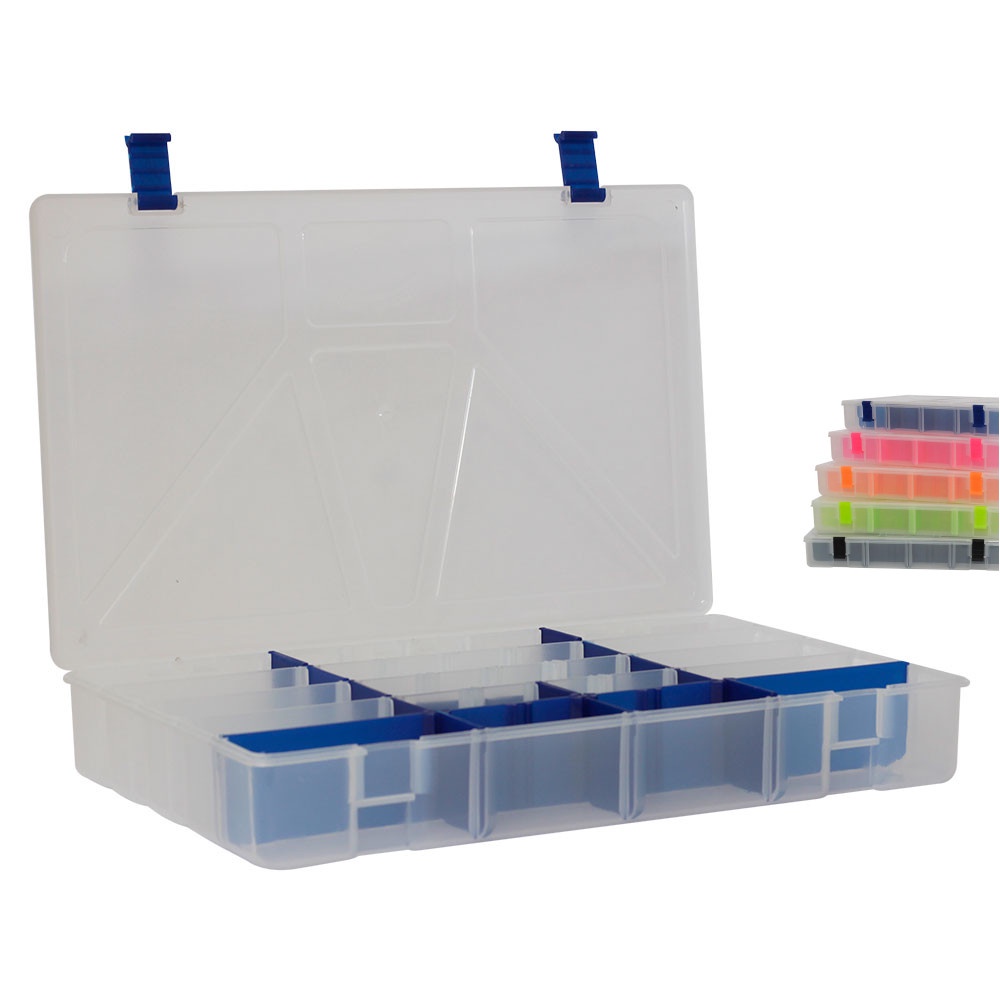 Estojo Caixa de Pesca Grande para Iscas Artificiais com 22 Divisórias Ajustáveis - Transparente