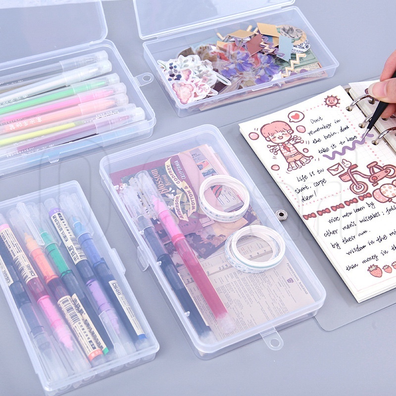 Caixa De Armazenamento Multifuncional De Notas De Jóias/Retangular Transparente Para Desktops Peças De Hardware De Grande Capacidade Com Tampa