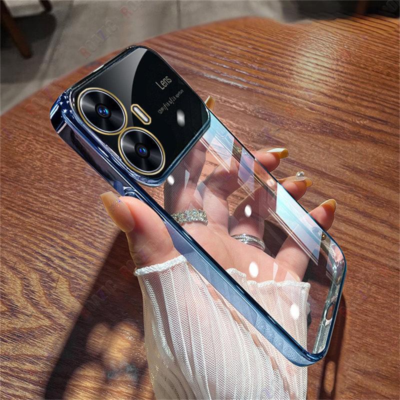 Com Caixa De Filme De Lente Para Telefone Realme C55/NFC Galvanizada Grande Vista Transparente TPU Soft Capa Traseira Ultrafina À Prova De Choque