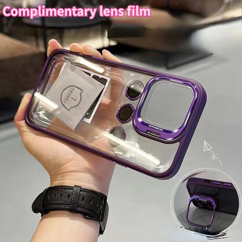 Liga Acrílica Transparente De Alumínio Com Suporte Embutido , Película Para Lentes , Caixa Telefone À Prova De Choque Adequada iPhone 15 14 13 12 11 Pro Max