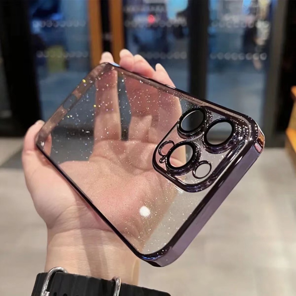 PC De Luxo Galvânico Brilhante Vem Com Proteção De Filme Para Lentes E Caixa Telefônica Transparente Amortecedora Adequada iPhone 11 12 13 14 15 Pro Max