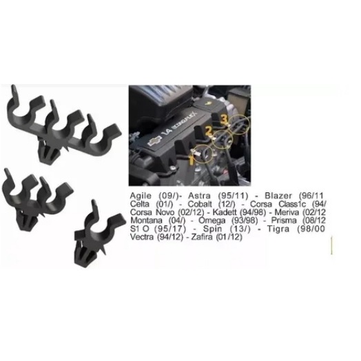 Kit 3 Presilha Grampo Cabo De Vela Corsa Classic GM Corsa Novo Spin Celta Agile Fiat Palio Siena Punto Strada Doblo Palio Weekend Motor 1.8