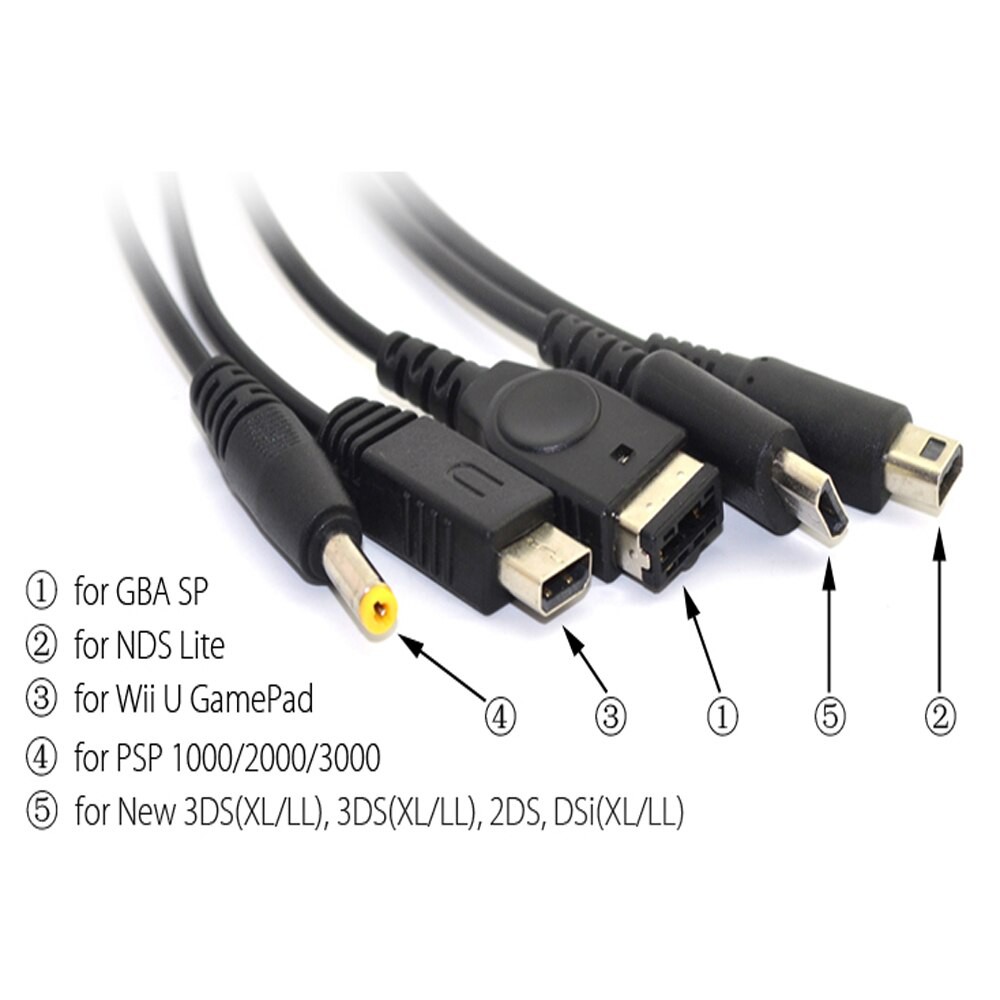 Cabo De Carregamento CRE Para NDSL WiiU Novo S XL 2DS DsiXL NDS GBASP PSP1000 Fio De Linha De Carregador 5 Em 1