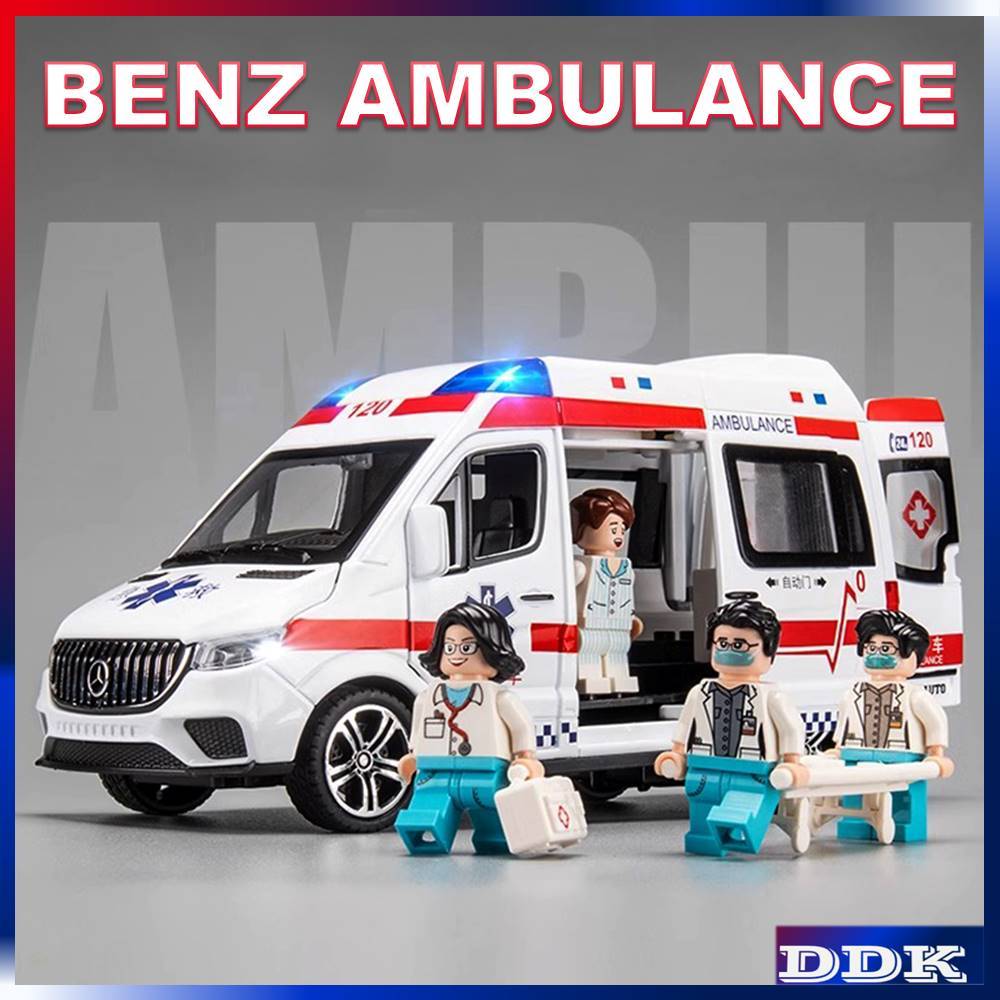 DDK 1 : 24 Benz Ambulância 120 Bonecas Modelo Diecast Carro Liga De Brinquedo Metal Luz Pull Back Truck Collection Veículo Presentes Para Crianças Meninos Jogos Infantis Amigos Aniversário Presente