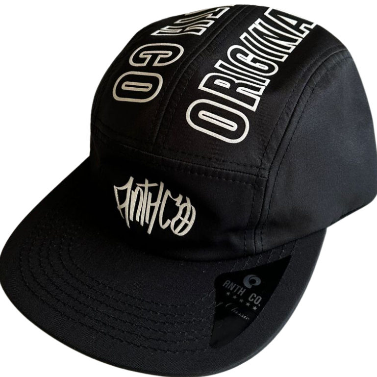 Boné Five Panel Anth Co. Aba Reta | Strapback | Preto | Grafite | Fitão | Original | Linha Premium