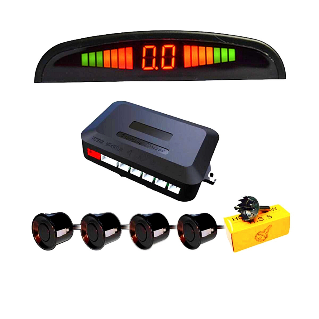 Sensor De Ré Estacionamento 4 Pontos Universal Cores Display Sonoro Carro Led