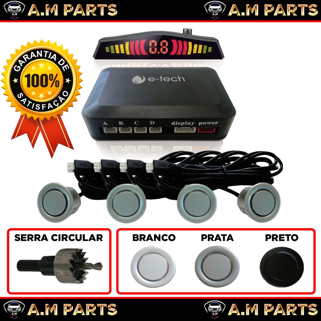 Sensor Estacionamento Ré 4 Pontos E-Tech Universal Traseiro Display Led Kit Original