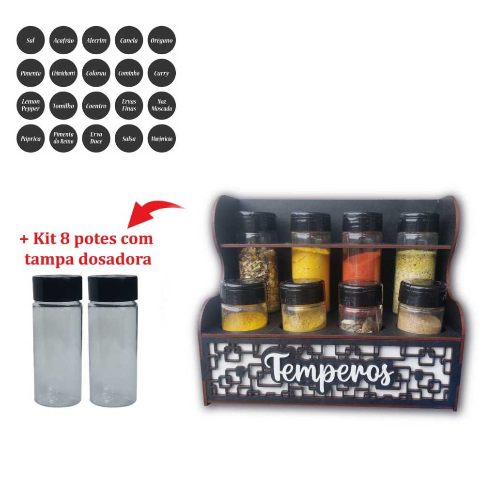 Porta Temperos Condimentos Retrô + Kit de Potes com Tampa Dosadora