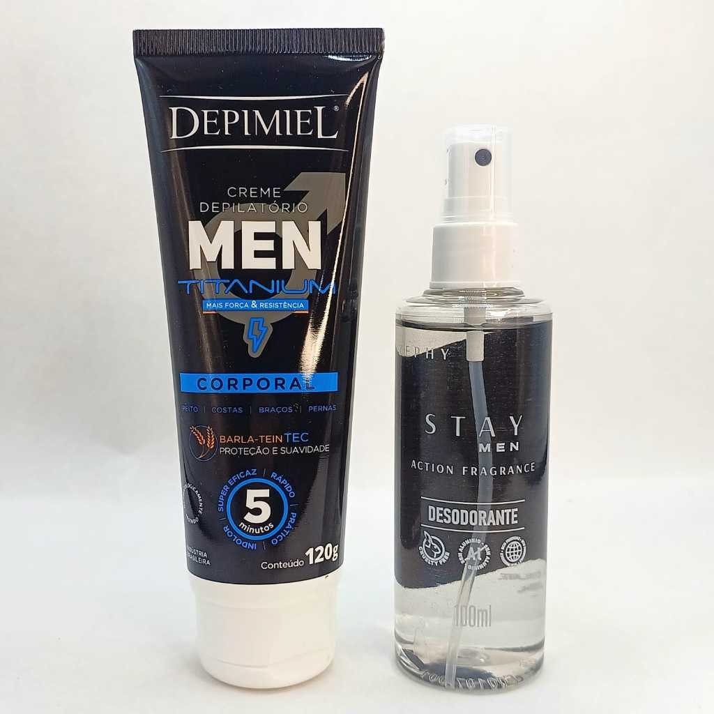 Creme depilatório Men Titanium 120g Depimiel + desodorante spray Zephy Stay Men 100ml
