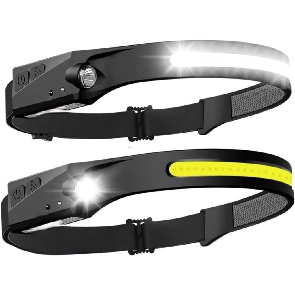 Amuzer Lanterna/LED recarregável por USB, lanterna de cabeça de corrida, lanterna com sensor de movimento, lanterna COB de 230° para caminhada, ciclismo, acampamento