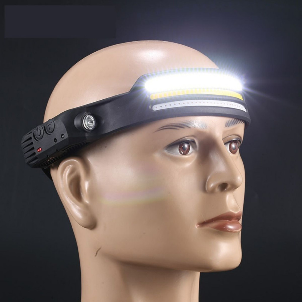 Farol de LED Recarregável Lanterna de Cabeça Com 6 Fita Led Cob + Luz de Foco e Sensor De Movimento , Faróis Para Adultos, Lanterna De Cabeça Para Ciclismo, Corrida e Reparos