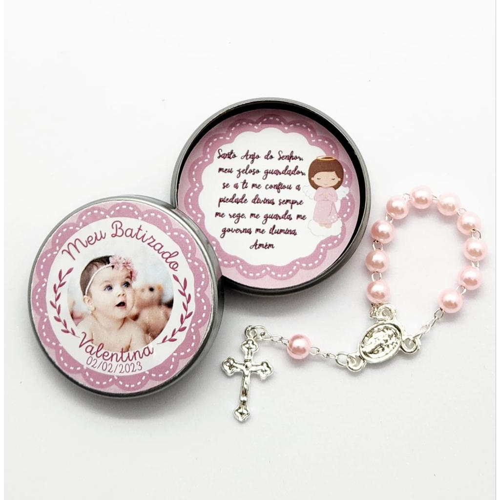 Lembrancinha batizado - 10 unidades - Latinha com terço - Personalizada