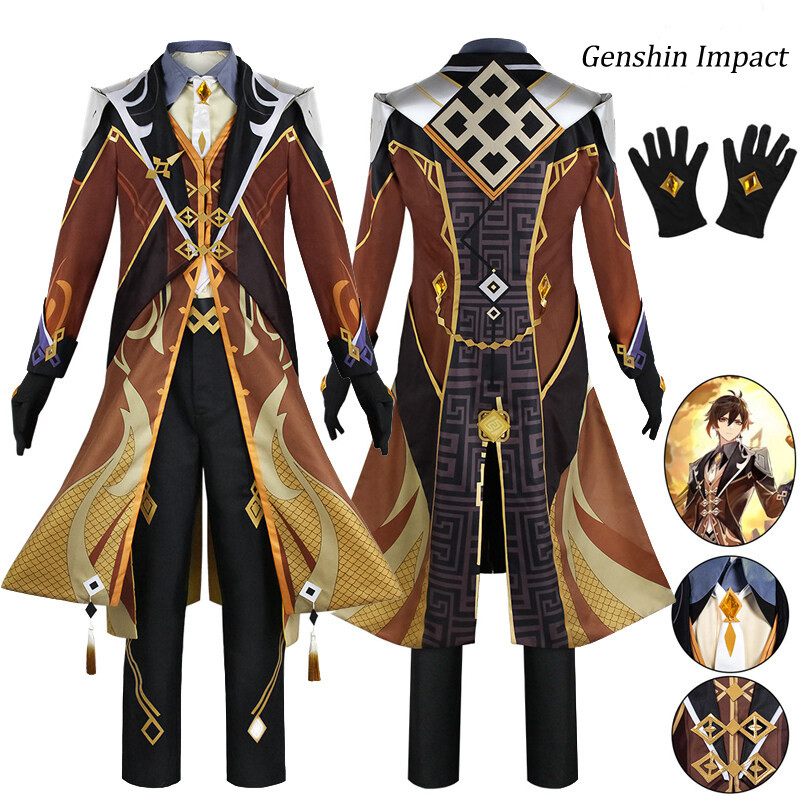 Anime Genshin Impacto Cosplay Traje Zhongli Conjuntos De Uniforme Completo Jogo Personagem Robe Halloween Fantasia Outfit