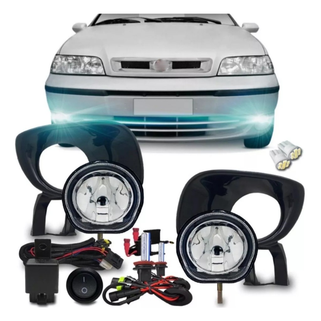 Kit Farol Milha Auxiliar e Lâmpada Fiat Palio Siena Strada G2 2001 2002 2003