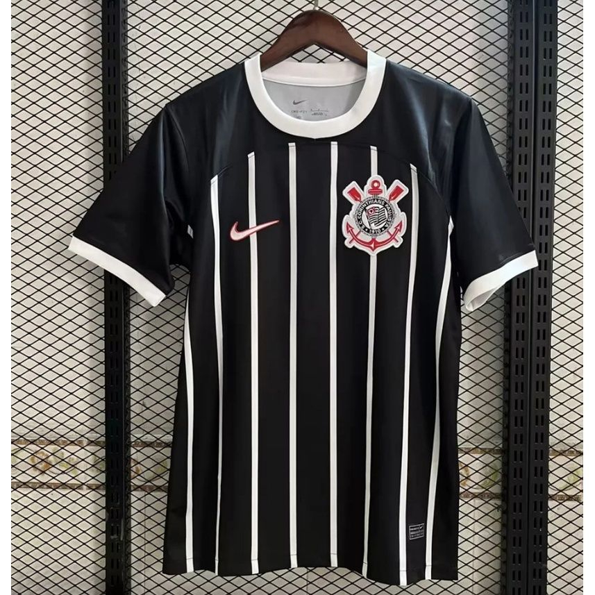 Camisas e Camisetas de TIME do CORINTHIANS PRETO LISTRADA 2023 / Escudo Bordado / 100% Poliester