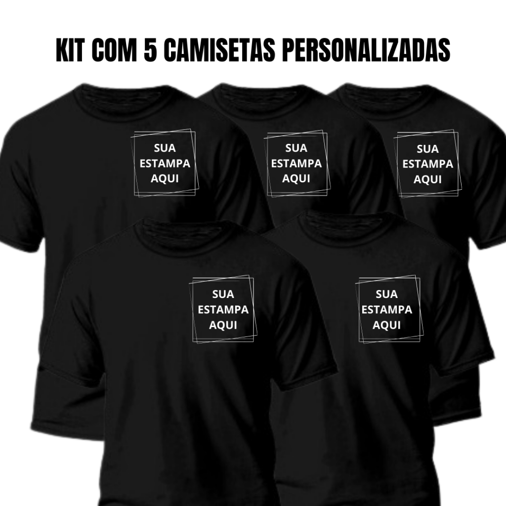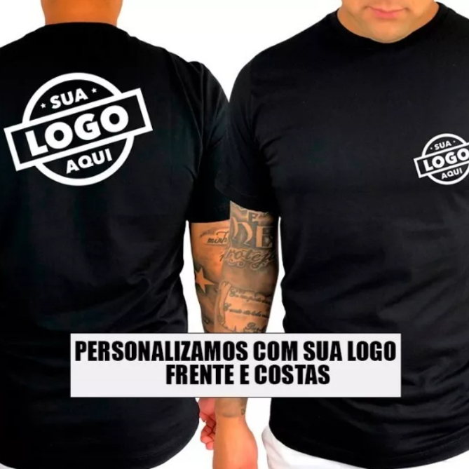 Kit 5 Camiseta Personalizada Nas Costas e Peito Com Sua Logo Ou Estampa Preferida 100% Algodão